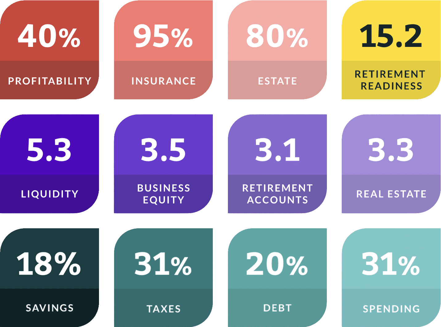 The Financial Hygiene Chart evaluates 12 important financial indicators, pulling data from your dashboard, investment accounts, tax returns, insurance, and business financials to create one clear, organized view of your financial health. It helps answer the questions dentists ask most: