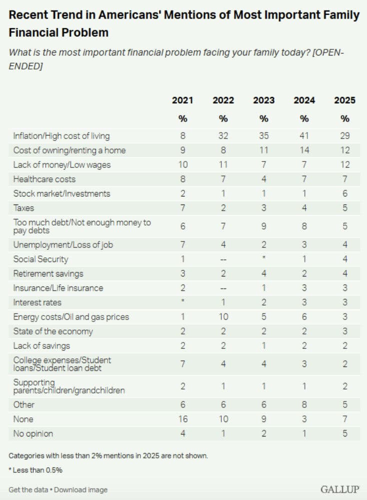 Gallup conducts a survey each year asking Americans their biggest financial concern:
